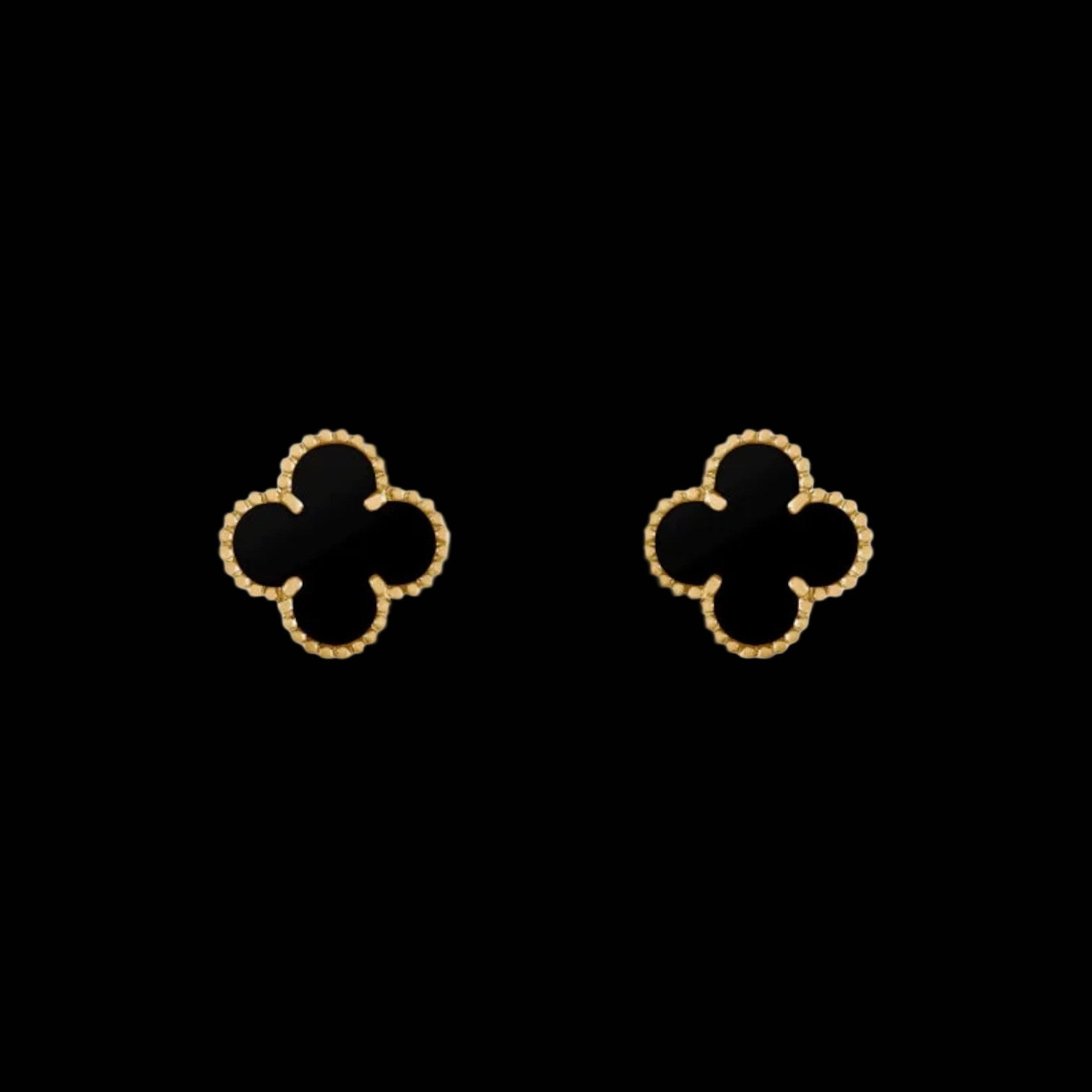 Ever-Bloom · 18k Gold Over 925 Sterling Double-Sided Clover Stud Earrings · Black