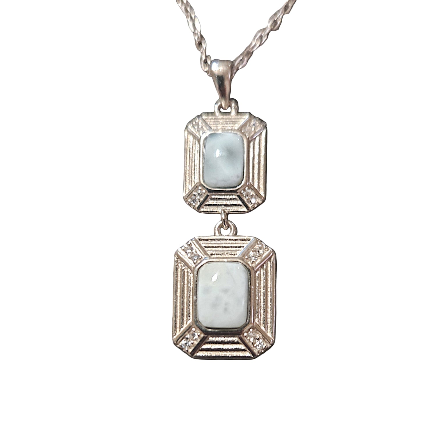 Pure Brilliance · 16–18 in Genuine Larimar 2-Stone Necklace · 925 Sterling Silver