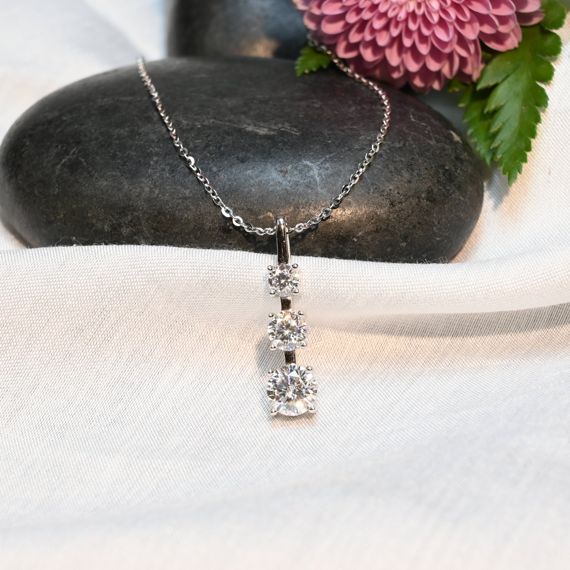 Pure Brilliance · 3-Stone Moissanite Necklace · Sterling Silver · 18–20in
